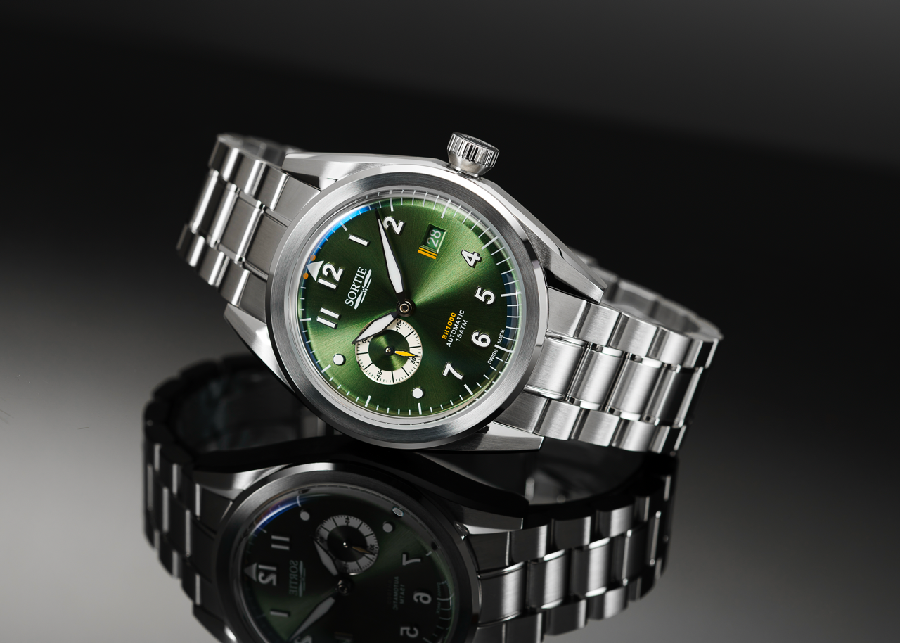 More than your typical pilot's watch. The case is sculpted from stainless steel, with both satin-brushed and polished surfaces to catch the eye. The sunburst dials radiate a captivating play of light and depth, adding a dynamic elegance that shifts with every glance.
